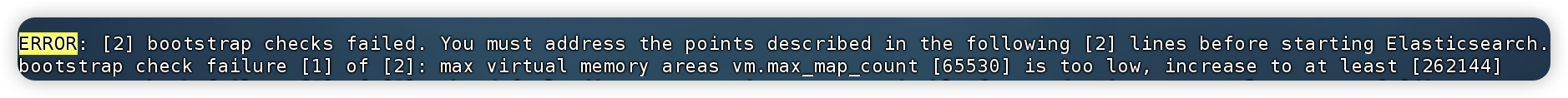 问题1:bootstrap check failure [1] of [2]: max virtual memory areas vm.max_map_count [65530] is too low, increase to at least [262144]