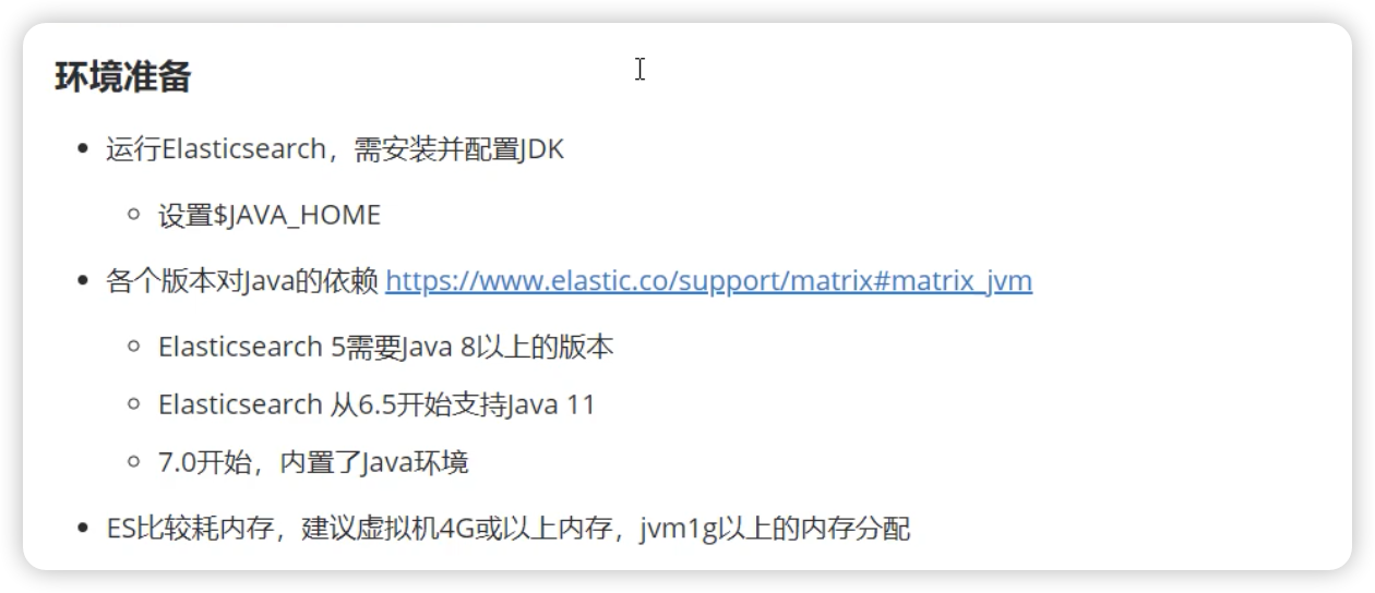 每个版本的es对应不同版本的jdk,所以安装es版本要先查看匹配的jdk版本!