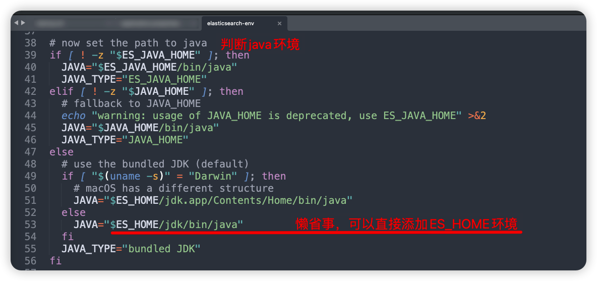 查看bin/elasticsearch-env文件文件中有标识环境变量!