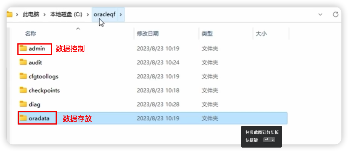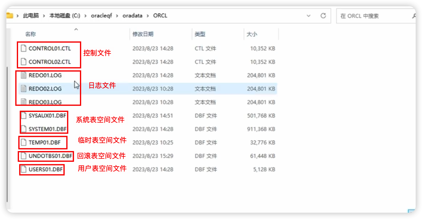 oracle家目录/oradata/实例名,存放的是系统表空间文件、用户表空间文件、回滚表空间文件、临时表空间文件、控制文件、日志文件。