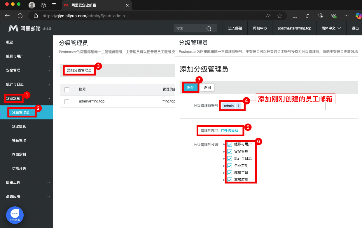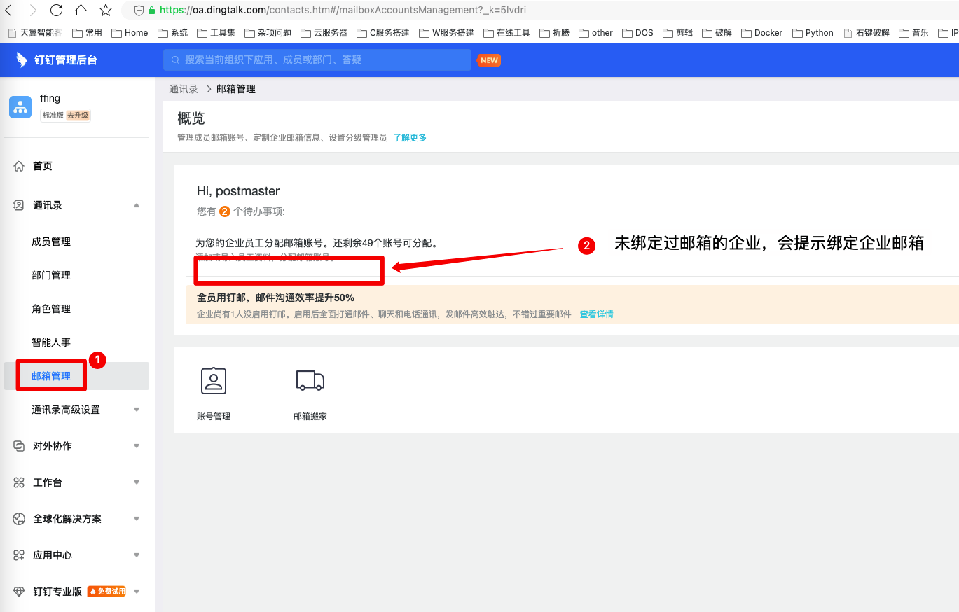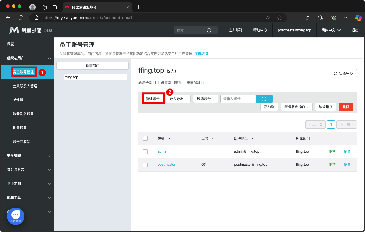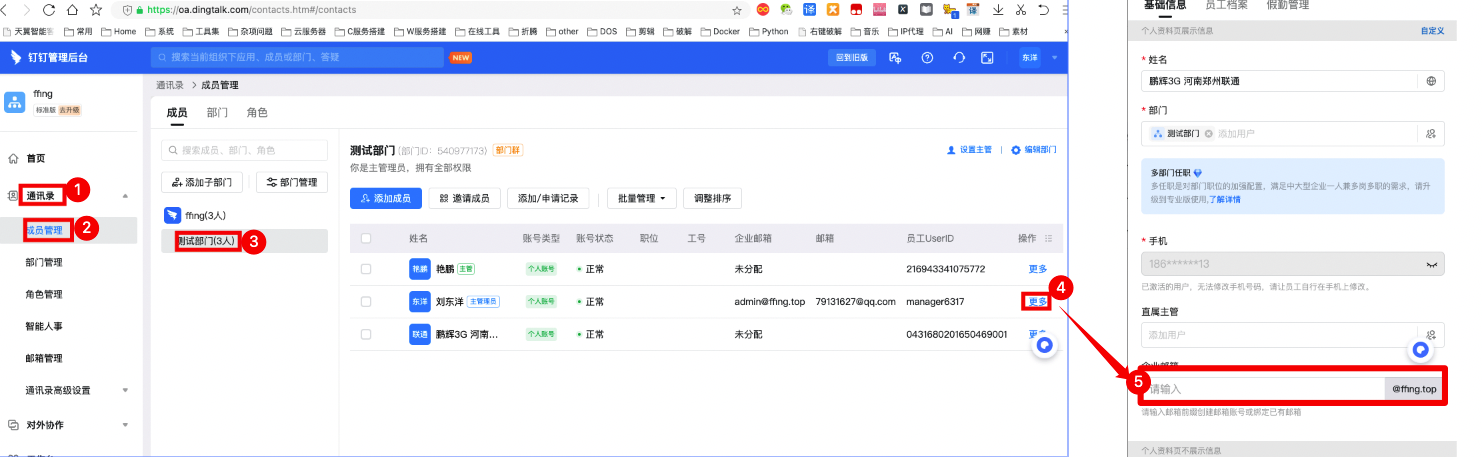 第四步,钉钉企业后台员工分配企业邮箱账号¶