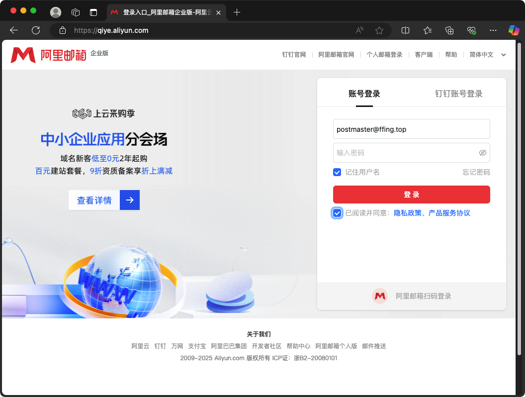 地址:https://wanwang.aliyun.com/mail/freemail/