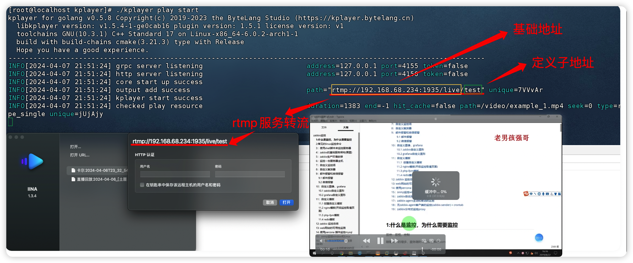 1.搭建rtmp服务器测试推流(若是B站、抖音、快手直播推流可略过次步骤)