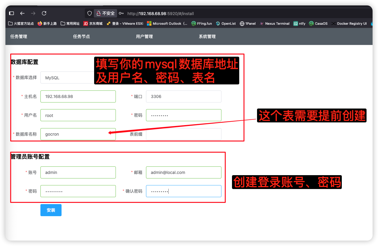 注:mysql中的表需要提前创建,必须空表,我创建的表名为gocron