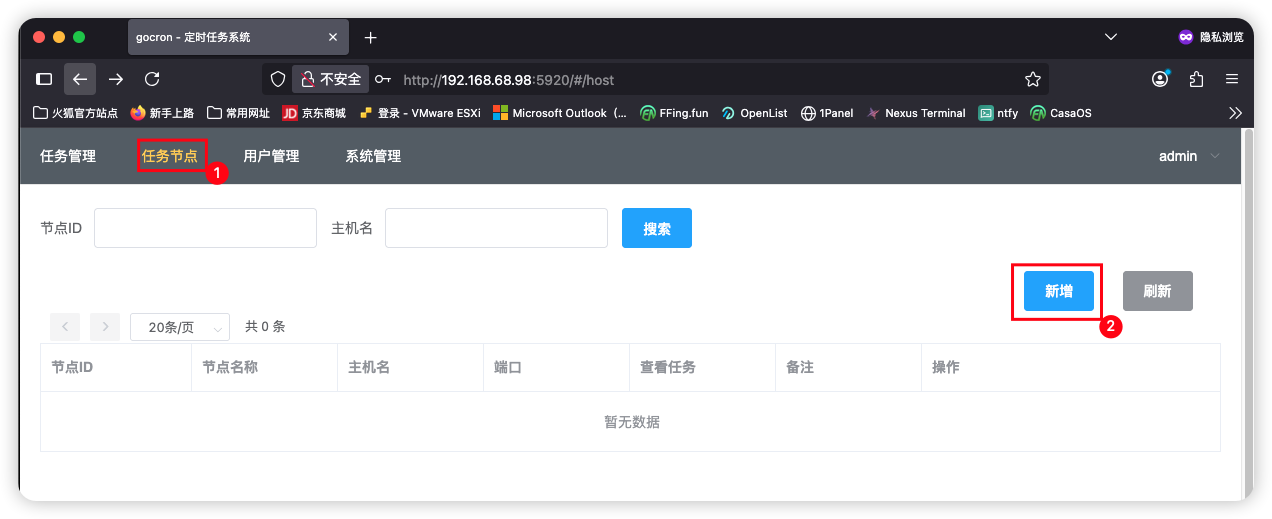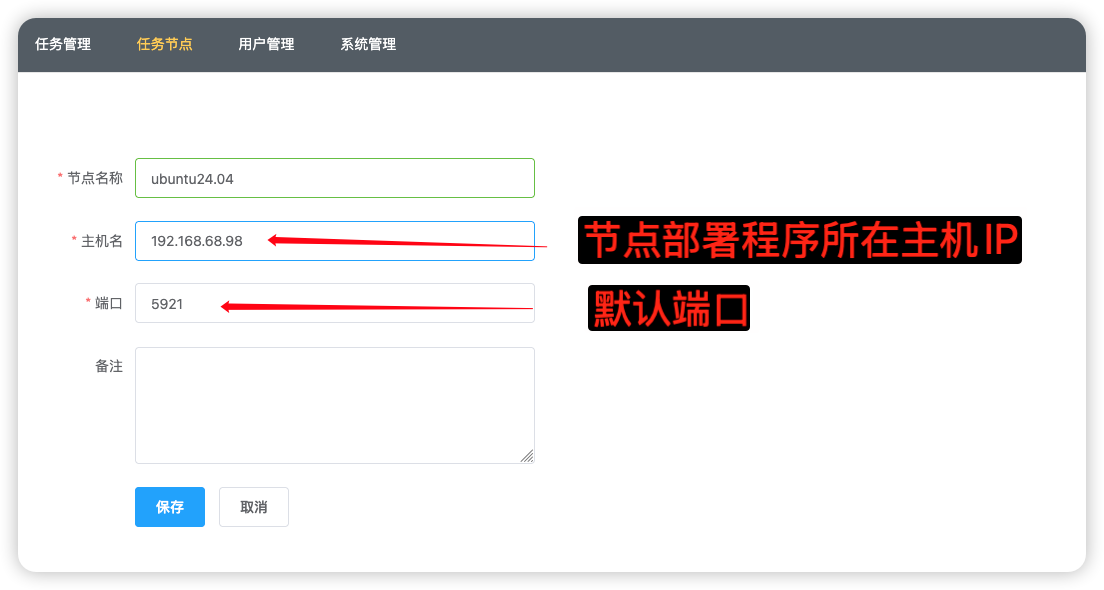 节点就是要执行任务的节点,需要提前部署好节点程序(第四步的内容)