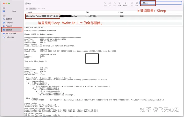**第一步:打开控制台** 第一步:打开控制台¶ 打开控制台 或者你直接找到快捷菜单,双击打开即可。 第二步:删除诊断报告中的Sleep Wake Failure¶ 点击控制台中左侧的“ 这里就会显示一个或多个文件,将“Sleep Wake Failure”命名的文件,全部删除即可。 删除不会?点击右键,